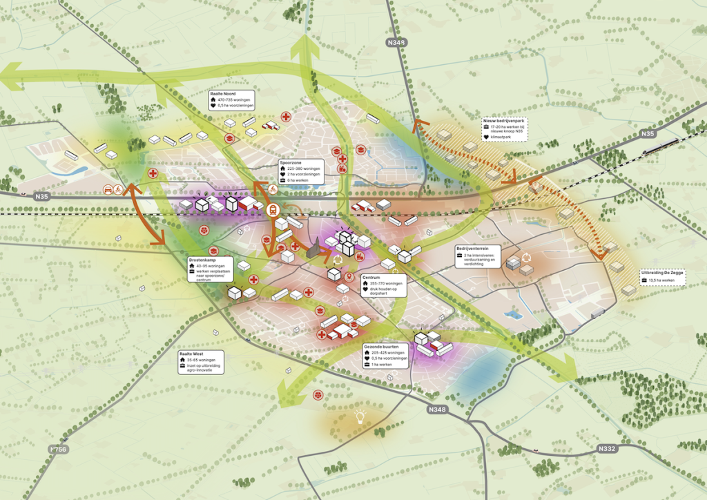In Raalte en Heino is de druk op de woningmarkt groot. Bovendien hebben beide kernen in kader van de verstedelijkingsopgave van de regio Zwolle een groeiopgave in te vullen. Om dit op een toekomstbestendige wijze vorm te geven, passend bij de identiteit van de kernen, hebben we samen met de gemeente, maatschappelijke en ketenpartners en op basis van een eerste consultatie van de samenleving voor beide kernen Groeibeelden ontwikkeld.
