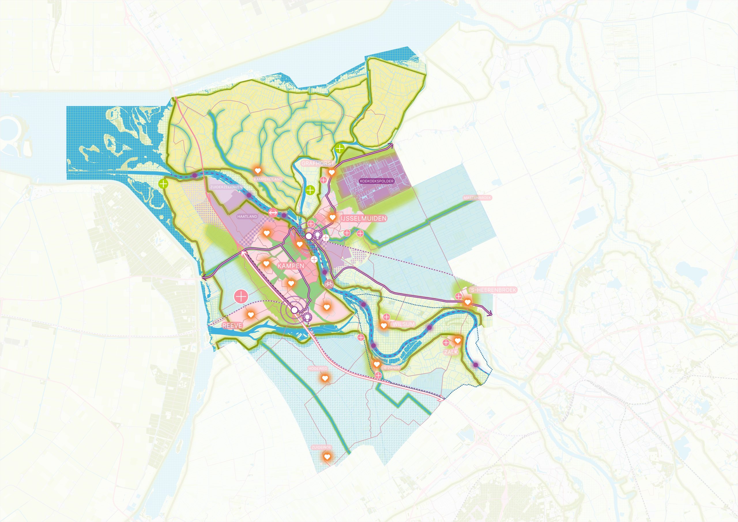 Met haar ligging in de IJsseldelta, is de gemeente Kampen al eeuwen bedreven in het samenleven met het water. In de nieuwe Omgevingsvisie gemeente Kampen 2050 bouwt de gemeente door op die traditie en geeft ze zorgvuldig vorm aan haar toekomst, met respect voor het landschap en de kracht van bodem en water.